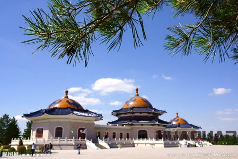 在伊金霍洛旗, 為知名的當然就是“一代天驕”成吉思汗的陵墓了。“成陵”坐落于該旗境內的甘德爾敖包上,總面枳約5萬平方米,主要分為圍墻、廣場、陵寢三個部分。而陵寢則由正殿、東殿、西殿和后殿組成,四殿相互連接,殿頂成圓形,房檐均為金黃色、藍色琉璃瓦鑲嵌砌筑,顯得格外輝煌壯觀。