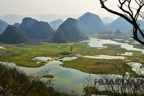 普者黑,位于云南省丘北縣境內,距縣城約13千米,屬典型的喀斯特地貌,風光綺麗而 ,堪稱云南“小桂林”。在彝族語中,“普者黑”的意思是“魚蝦豐美的池塘”。的確,整個普者黑的水面接近兩萬畝,景區內山、水、花、鳥、洞、谷樣樣俱全,景色優美,如詩如畫。泛舟湖上,萬頃湖水波光瀲滟,遠近山峰千姿百態,周邊村落民俗情韻,使普者黑成為文人、畫家以及攝影愛好者 為青睞的水上田園。