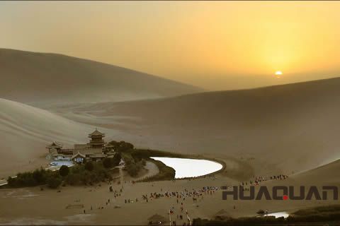 要問中國 美的風景在哪兒?敦煌算作一處。尤其是那神奇的月牙泉,以及由此形成的勝景——“月泉曉徹”,總讓人垂涎、迷戀。沙漠的眼睛、天地的鏡子、人間的圣泉……一個個堪稱地表 美的詞匯,我想無論用哪一個來形容月牙泉都不為過。9月9日上午,一臺50千瓦的玉柴系列發電機組從山東華全動力裝車起運,發往甘肅敦煌,于是隨華全發電機組,我們也來到了敦煌——這座被稱作“沙都”的千年古城。